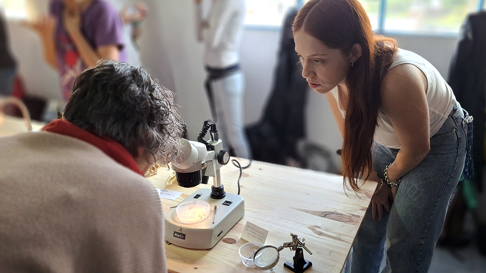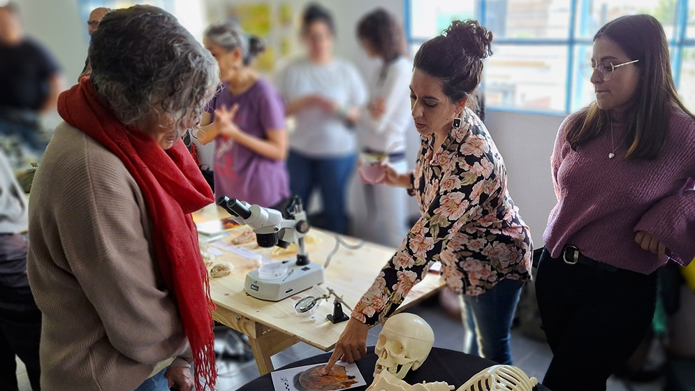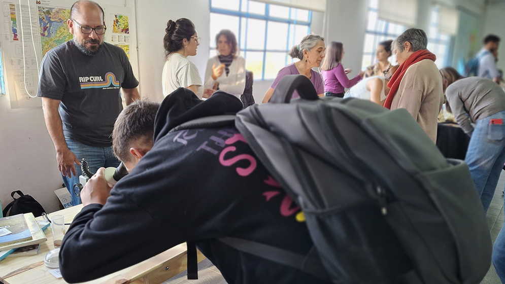 A través de la paleontología, investigadoras participaron en la exhibición de huesos actuales y fósiles, y su relación. Y desde la geología, especialistas expusieron arenas de diferentes partes de Argentina y del mundo, donde se pudieron observar a través de la lupa y un microscopio.