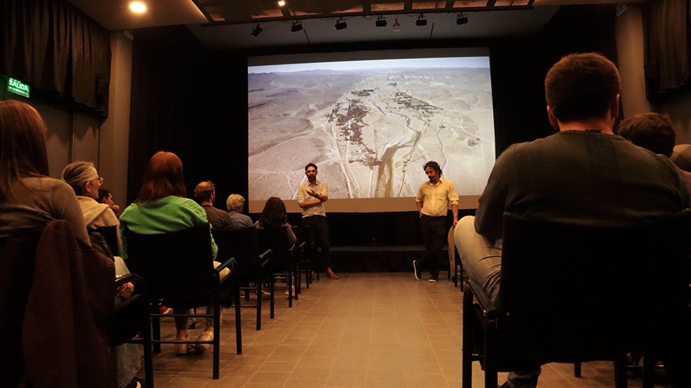 Luego, en la sala de cine del Espacio INCAA, hubo dos proyecciones. Uno de ellos fue el episodio número cinco de "Patagonia, Tierra de Dinosaurios", realizado por el Centro de Producción de Contenidos Audiovisuales de la UNRN. El mismo se trata de que una persona llamada Manuel visita el Museo Ernesto Bachmann en El Chocón y conoce al paleontólogo Juan Canale, investigador del CONICET, quien le presenta al Giganotosaurio Carolinii, el dinosaurio carnívoro más grande del mundo.